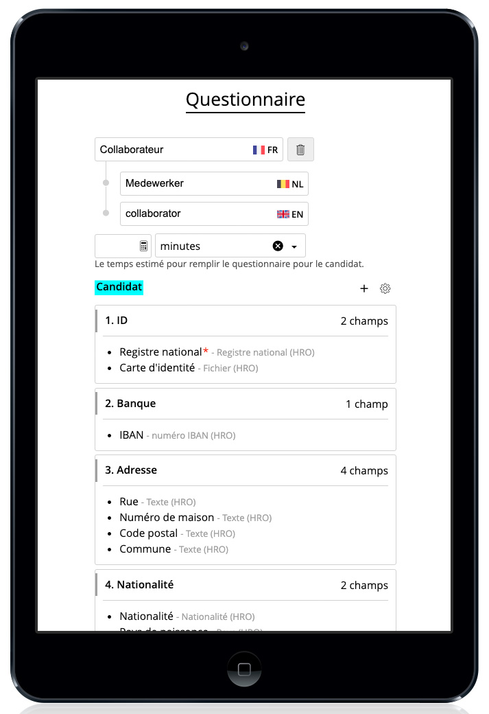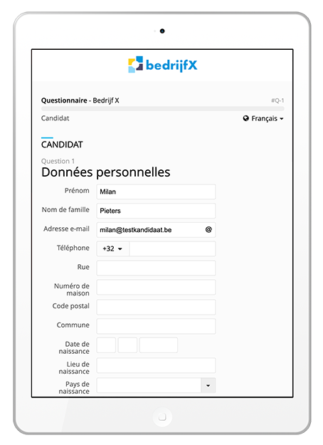 Laissez vos candidats remplir leurs données eux-même en-ligne.