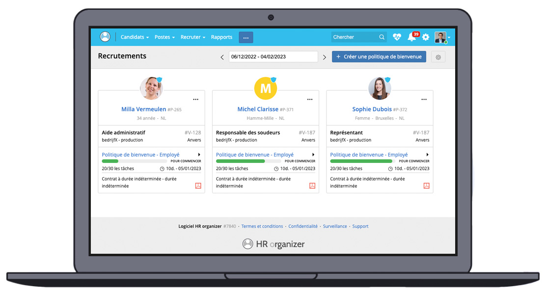 Nous accordons une grande attention à la convivialité du système, afin que travailler avec notre logiciel de recrutement soit une expérience positive pour les recruteurs, les managers et les candidats !