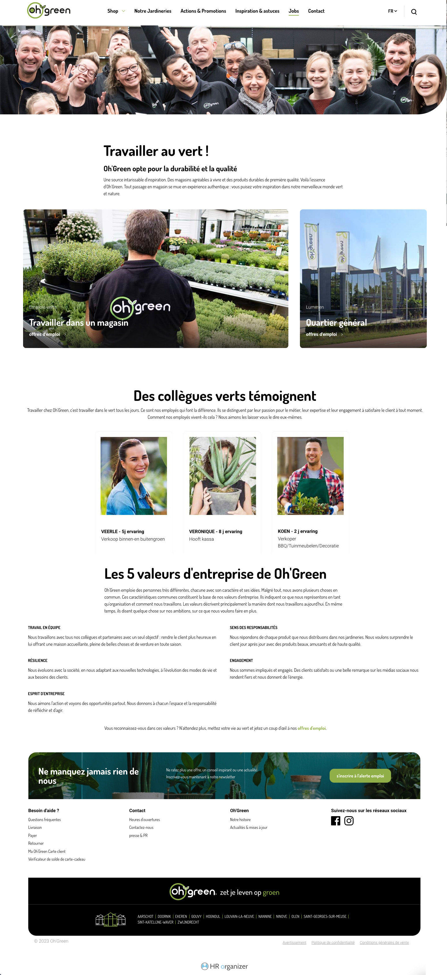 Le site carrière ou le site emploi a été totalement personnalisé par HR organizer. Il a été, après discussion avec Oh Green, reproduit à l’identique par rapport au site Web initial. Cette méthode offre la meilleure expérience de candidature pour leurs candidats.