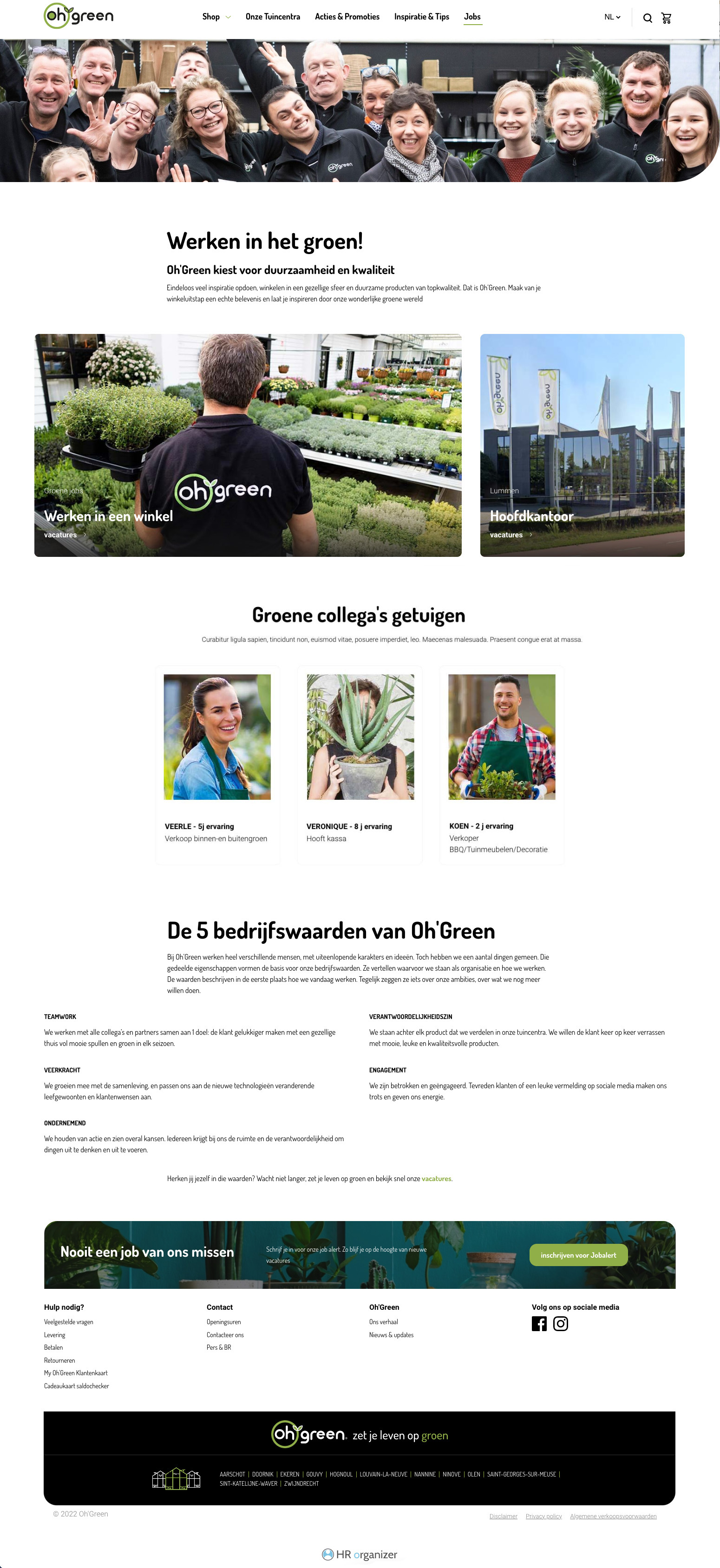 https://www.ohgreen.be/De careersite van Oh Green is volledig gebaseerd op hun website. Het menu en de footer werden volledig overgenomen zodat kandidaten steeds in dezelfde site blijven surfen.