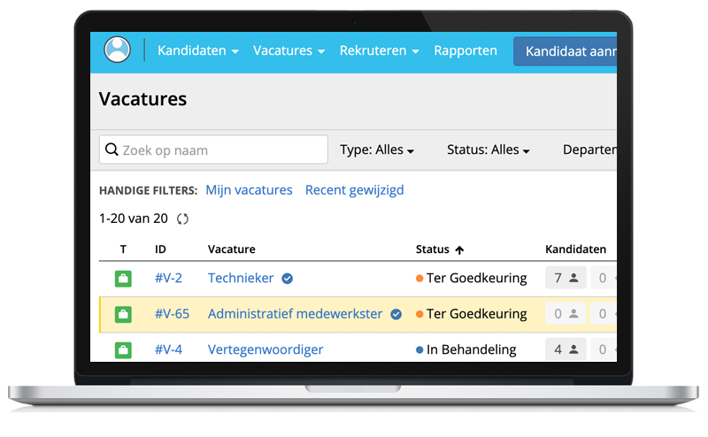 Automatische herinneringen ondersteunen het proces zodat er geen tijd verspild wordt. De frequentie van deze reminders stelt u zelf per vacature in.