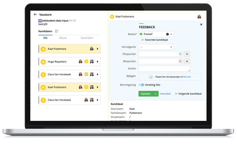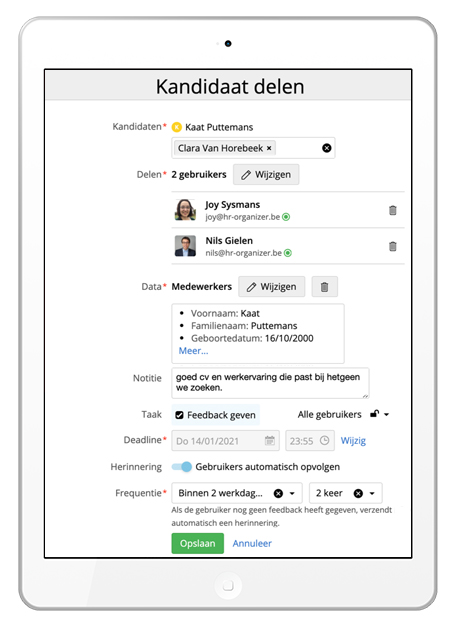 Gegevens van kandidaten delen met collega's vanuit HR organizer.