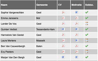 U kan de nodige documenten online opvragen en bekijken (valideren) na ontvangst. De foute documenten kan u opnieuw door de kandidaat laten uploaden.