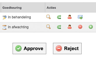 Per vacature kan er een goedkeuringsproces ingesteld worden. Elke user kan ingeschakeld worden om een vacature goed te keuren. De goedkeurders krijgen een overzicht van het gehele proces en kunnen goedkeuren of weigeren.